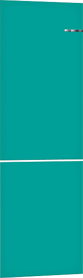 Декоративная панель Vario Style Bosch KSZ1BVU00 в цвете «морская волна» станет ярким акцентом среди мебели светлых тонов и прекрасно впишется на кухне, оформленной в любом стиле.