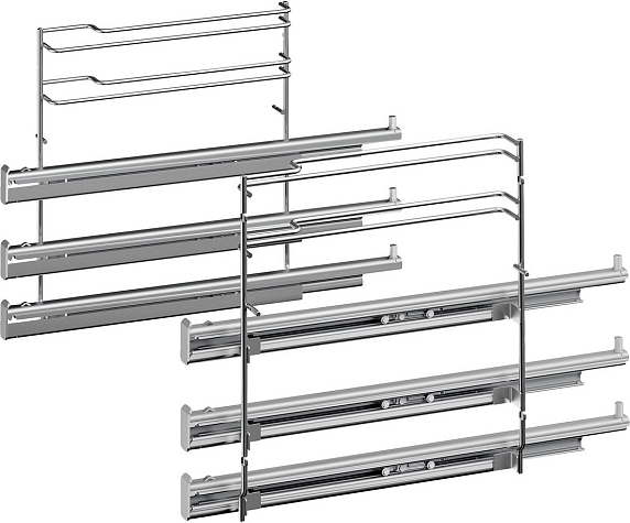Комплект полностью выдвигающихся на трех уровнях телескопических направляющих Bosch HEZ638D30 для духовых шкафов и плит Bosch 60 см с паром (+2 фиксированных).