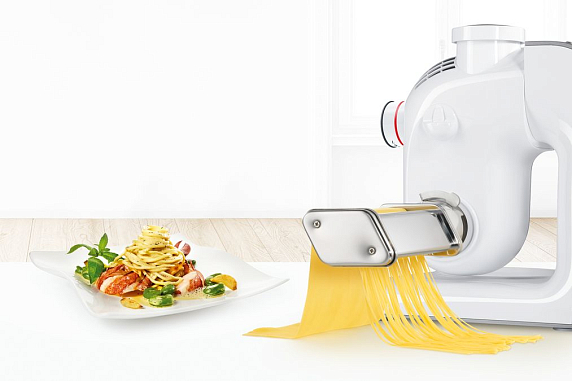 Насадка на кухонные комбайны Bosch MUZ5NV3 предназначена для приготовления спагетти и позволит с лёгкостью превратить листы теста в аккуратные домашние спагетти толщиной 1.6 мм