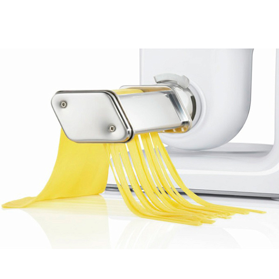 Насадка на кухонные комбайны Bosch MUZ5PP1 предназначена для приготовления спагетти и позволит с лёгкостью превратить листы теста в аккуратные домашние спагетти. В комплект входят две насадки для нарезки разной толщины.