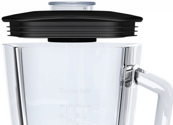 На крышке кувшина расположен мерный стаканчик, который позволяет точно дозировать специи и сахар при смешивании фарша или смузи. Пять скоростей позволяют измельчать продукты разной плоскости, замороженные ингредиенты и колоть лед для напитков.