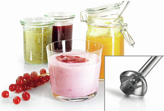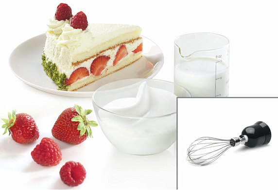 Специально предназначен для измельчения малых объемов, идеально подходит для приготовления детского питания, пюре и соусов. Металлический венчик поможет приготовить взбитые сливки и легкие кремы.