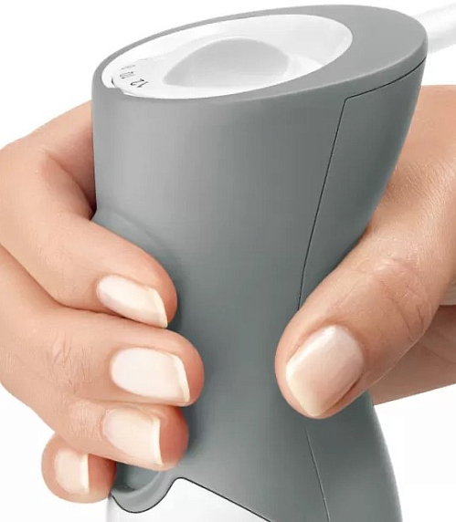 Прибор оснащен 12 скоростями, благодаря чему пользователь может выбирать интенсивность, с которой будет работать блендер. Наличие импульсного турбо-режима позволяет перемолоть продукты в однородную массу за короткое время. Управление осуществляется посредством нажатия кнопок или поворота переключателя. Эргономичная ручка прибора имеет мягкое покрытие Soft-touch. Это значит, что она устойчива к отслаиванию, попаданию влаги и механическим повреждениям, а также не скользит в руках. Мощность 600 Вт делает технику идеально подходящей для семьи из одного-трех человек. Кроме того, благодаря низкому уровню шума и вибраций не возникает дискомфорта при использовании.