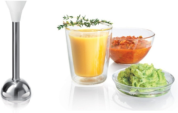 Нож блендера из нержавеющей стали оснащен четырьмя острыми лезвиями для быстрого измельчения и смешивания продуктов. 12 скоростей позволяют подобрать необходимый режим для работы. Среди преимуществ модели — насадка для приготовления картофельного пюре.