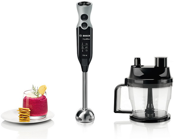 Эргономичная ручка с мягким покрытием Soft-touch в блендерах Bosch обеспечивает комфортное и уверённое удержание прибора. Антискользящая поверхность снижает усталость во время работы, а продуманная форма подходит под любой тип руки. Это делает процесс измельчения и смешивания более удобным и безопасным.