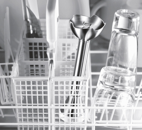 - Ножку блендера и принадлежности (кроме основной части прибора с приводом) можно мыть в посудомоечной машине