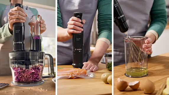 Погружные блендеры Bosch легко справляются с измельчением, смешиванием и взбиванием прямо в любой ёмкости — они идеально подходят для приготовления супов-пюре, коктейлей, соусов и детского питания. Устройства оснащены прочными ножами из нержавеющей стали, плавной регулировкой скорости и эргономичным дизайном для комфортного использования. Некоторые модели комплектуются дополнительными насадками, расширяя возможности кухонной подготовки. Блендеры Bosch — это практичный выбор для тех, кто ценит качество и функциональность.