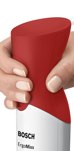Блендер Bosch MSM64120 выполнен в белом цвете с красными элементами на корпусе. Турбо-режим подойдет для ускорения процесса измельчения и достижения более эффективного результата