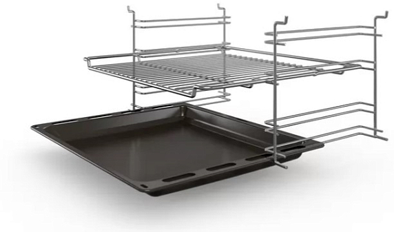 Мощность духового шкафа Бош позволяет максимально ускорить приготовление блюд даже самых внушительных объемов и весов. Поместите продукты на решетку, разместите под ней противень и включите «Большой гриль». В этом режиме включаются все нагревательные элементы гриля. Следуйте рекомендациям в инструкции, чтобы не пересушить продукты.