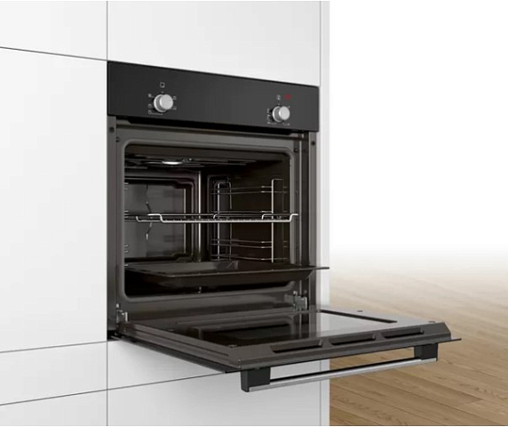Духовой шкаф Bosch HAF010BA1R электрический, шириной 59.4 см, черный, традиционная очистка