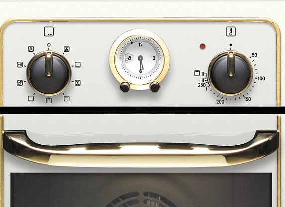 Регулятор температуры рассчитан на диапазон от 50 до 270 ºC. Часы, выполненные в классическом «механическом» дизайне, позволяют запрограммировать начало и продолжительность приготовления пищи. Можно также включить режим таймера.