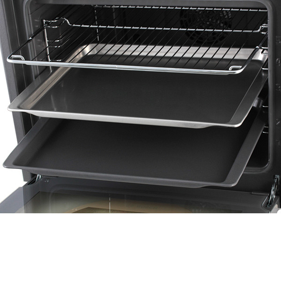 Бош HBA 23BN21 включает в комплект поставки решётку, эмалированный и алюминиевый противни. Для их установки предусмотрено пять уровней. Противни и решётки не должны касаться стекла дверцы. Сама дверца выполнена из тройного закалённого стекла. Внутренняя поверхность полностью стеклянная, что существенно облегчает её мытьё. Рабочая камера покрыта эмалью лёгкой очистки GranitEnamel. Поверхность при этом получается ровной и гладкой, стойкой к случайным ударам и царапинам, воздействию кислот. Её структура позволит вам забыть о пятнах пригоревшего жира на стенках. Система охлаждения запускается автоматически, по окончании работы устройства. Эта опция исключает возможность его перегрева и предотвращает риск поломки.