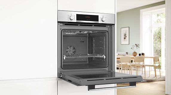 Духовой шкаф Bosch HBA3340S0 отличается утонченным дизайном и высокой функциональностью. Она выполнена в цвете нержавеющей сталь, что придает ей современный и стильный вид. Сенсорные поворотные утапливаемые элементы управления и LED дисплей делают использование прибора максимально удобным и простым. Особое внимание стоит уделить функционалу этого прибора. Он обладает 8 режимами нагрева и широким диапазоном температур от 50 до 275 градусов. Среди особенностей - 3D-горячий воздух, горячий воздух Gentle, верхний/нижний жар, большой гриль, гриль с конвекцией. Термогриль, режим для пиццы, нижний жар и автоматический быстрый разогрев. Это позволяет готовить разнообразные блюда, сохраняя их вкус и полезные свойства. Внутреннее освещение галогенное, что делает процесс приготовления блюд контролируемым.