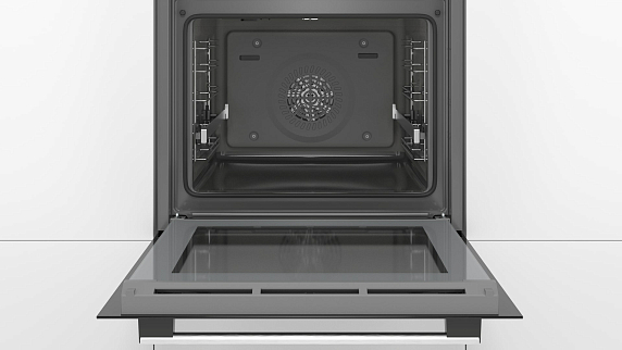 Электрический духовой шкаф Bosch HBA5560S0 работает в 5 режимах и нагревается до 275°C. Функция конвекции равномерно распределяет горячий воздух, что позволяет приготовить несколько блюд на разных противнях одновременно. Специальное покрытие EcoClean расщепляет жир во время выпечки, что делает простым уход за изделием.