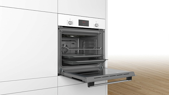 Духовой шкаф Bosch HBF114BW0R электрический, шириной 59.4 см, белый, традиционная очистка
