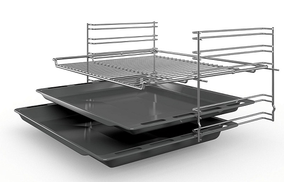 Мощность духового шкафа Бош позволяет максимально ускорить приготовление блюд даже самых внушительных объемов и весов. Поместите продукты на решетку, разместите под ней противень и включите «Большой гриль». В этом режиме включаются все нагревательные элементы гриля. Следуйте рекомендациям в инструкции, чтобы не пересушить продукты.
