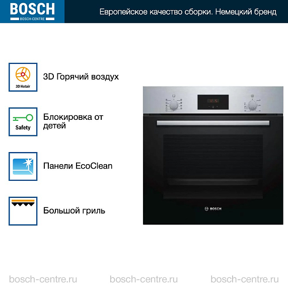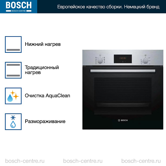 Духовой шкаф Bosch HBF114ES0 электрический, шириной 59.4 см, нержавеющая сталь, AquaClean очистка