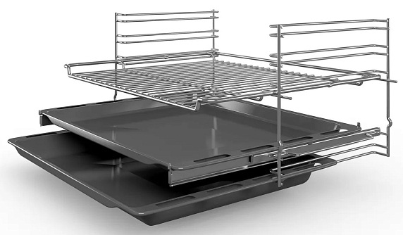 Мощность духового шкафа Бош позволяет максимально ускорить приготовление блюд даже самых внушительных объемов и весов. Поместите продукты на решетку, разместите под ней противень и включите «Большой гриль». В этом режиме включаются все нагревательные элементы гриля. Следуйте рекомендациям в инструкции, чтобы не пересушить продукты.
