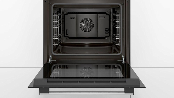 Духовой шкаф Bosch HBFS10BB0R — встраиваемая модель с функцией гидролитической очистки. В комплект входят: решетка, универсальный протвень и эмалированный противень для выпечки