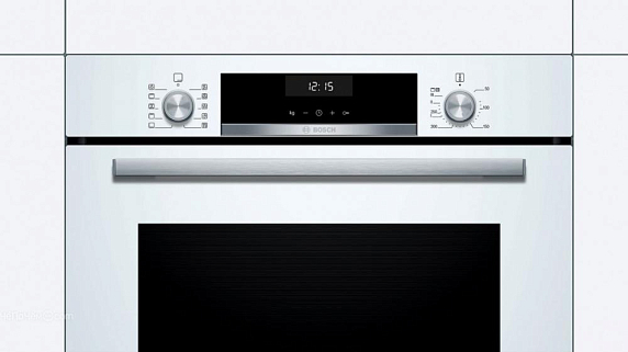 Духовой шкаф Bosch HBG517EW1R в белом цвете оснащен температурным диапазоном от 50 до 275 градусов, что позволит запекать мясо или готовить пиццу