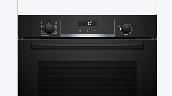 Духовой шкаф Bosch HBG536EB4 имеет элегантный фасад в чёрном цвете и аккуратной фурнитурой создают впечатление минимализма и премиального качества, которое гармонично вписывается в современные кухни. Корпус продуман до мелочей: компактные габариты (высота 59.5 см, ширина 59.4 см, глубина 56.7 см) позволяют установить прибор в нишу стандартного размера (60–60.4 х 56–56.8 х 55 см), а чёрная отделка дверцы и элементов управления придаёт интерьеру строгую, но уютную эстетику. Внутренний объём 71 литр обеспечивает достаточно пространства для приготовления больших блюд и многослойных запеканий, а аккуратное расположение галогенного освещения выгодно подчёркивает продукт даже при закрытой дверце.