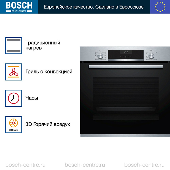 Духовой шкаф Bosch HBG5370S0 электрический, шириной 59.4 см, нержавеющая сталь, EcoClean очистка