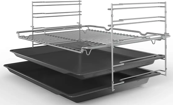 Мощность духового шкафа Бош позволяет максимально ускорить приготовление блюд даже самых внушительных объемов и весов. Поместите продукты на решетку, разместите под ней противень и включите «Большой гриль». В этом режиме включаются все нагревательные элементы гриля. Следуйте рекомендациям в инструкции, чтобы не пересушить продукты.