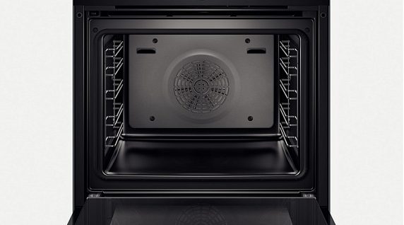Духовой шкаф Bosch HBG633BB1 оснащен каталитической панелью на задней стенки камеры, жировые загрязнения под воздействием высоких температур распадаются на углекислый газ и воду, это облегчит уход за устройством
