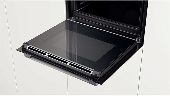 Духовой шкаф Bosch HBG633NB1 оснащен переключателем ControlRing, и интерактивным TFT-дисплеем, который обеспечит лёгкий и удобный доступ к основным режимам и функциям. Одноуровневые телескопические направляющие легко выдвигаются из камеры. Это создаёт дополнительный комфорт при обращении с горячими противнями.