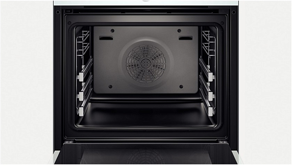 Духовой шкаф Bosch HBG633TW1 оснащен трехслойным остеклением, температура фасада дверцы не превышает 40 градусов. Телескопические направляющие на трех уровнях — это удобный доступ к содержимому камеры и безопасное обращение с горячими противнями. Специальные амортизаторы обеспечивают бесшумное открытие и закрытие даже при резком движении. Галогенная лампа равномерно освещает рабочую камеру, что позволяет контролировать приготовления без открытия дверцы и потери тепла.