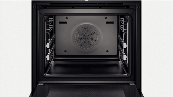 Духовой шкаф оснащен технологией PerfectBake, которая обеспечивает идеальный результат выпечки за счет точного контроля влажности внутри духовки. Меню Assist предлагает автоматические программы для приготовления различных блюд, что облегчает процесс приготовления пищи.