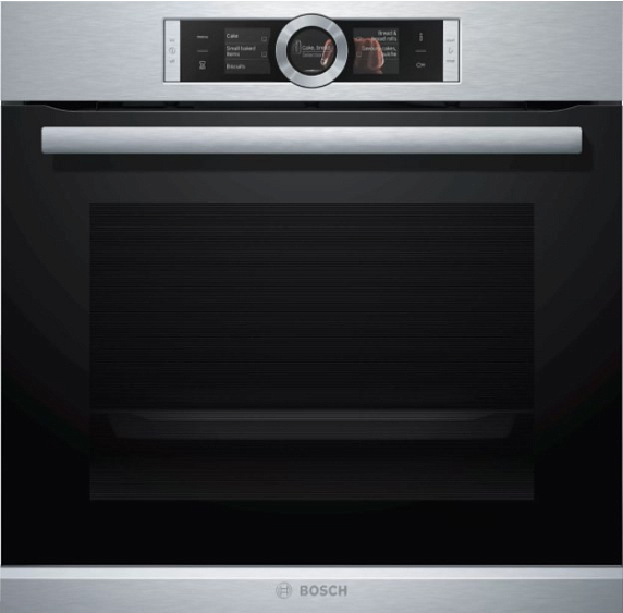 Духовой шкаф Bosch HBG636NS1 управляется при помощи сенсорного дисплея с кольцевым индикатором. За панелью управления легко ухаживать, она интуитивно понятна и удобна. Диапазон температур от 30 до 300 градусов позволяет готовить различные блюда — от йогурта и каши до пирогов и запеченного мяса.