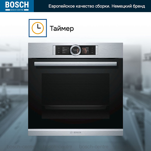 Духовой шкаф Bosch HBG6764S1 — это электрическая независимая модель из линейки Serie | 8. Ее внутренний объем составляет 71 литр, благодаря чему есть возможность запекать большие блюда. Она оформлена в цвете «нержавеющая сталь», благодаря чему отлично впишется в любой современный кухонный интерьер — например, в стиле хай-тек. Управление осуществляется посредством использования сенсорных кнопок и Control Ring. Благодаря многофункциональным часам Easy Clock можно с легкостью отслеживать время до окончания работы одной из программ.