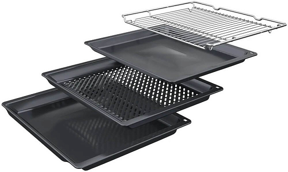 Управление духовым шкафом Bosch HBG7542B1 осуществляется с помощью сенсорных элементов и 2.5" цветного TFT дисплея, что делает процесс приготовления блюд максимально комфортным и интуитивно понятным. Встроенные электронные часы и таймер позволяют точно следить за временем приготовления пищи, а функция Home Connect обеспечивает возможность управления прибором дистанционно. Духовой шкаф оснащен 14 режимами нагрева, включая 3D-горячий воздух, горячий воздух Gentle, верхний/нижний жар и другие. Такое разнообразие режимов позволяет готовить различные блюда, сохраняя их вкус и полезные свойства. Диапазон температур варьируется от 30 до 300 градусов, что позволяет выбирать оптимальные условия для каждого типа продуктов.