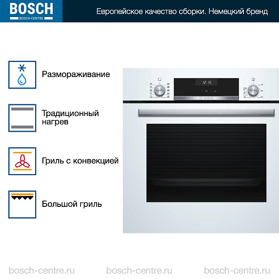 Bosch HBJ558YW0Q — это электрический духовой шкаф белого цвета. Объём камеры составляет 66 литров