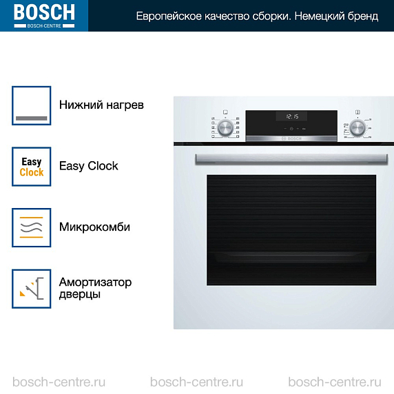** Все информационные материалы, представленные на Сайте, носят справочный характер и не могут в полной мере передавать достоверную информацию о свойствах, комплектации и характеристиках товара, включая цвета, размеры и формы. Фирма-производитель оставляет за собой право на внесение изменений в конструкцию, дизайн и комплектацию товара без предварительного уведомления. Перед оформлением Заказа Покупатель должен обратиться к Продавцу для уточнения свойств и характеристик Товара. Подробная информация о товаре указывается в инструкции и на упаковке товара. Используемое название в России: Бош HBJ558YW0Q