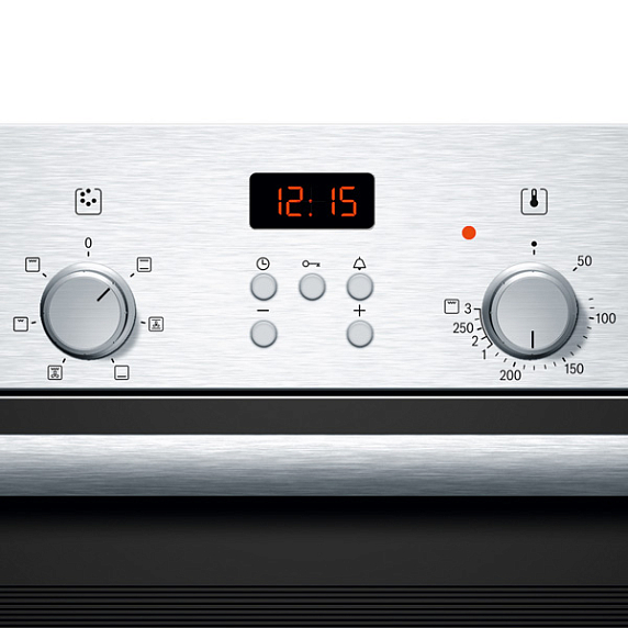 Электрический духовой шкаф HBN 231E4 — надежная модель с продуманной системой безопасности. Панель управления располагает утапливаемыми регуляторами, кнопками и дисплеем. Понятный и простой интерфейс повышает удобство использования. Фронт из нержавеющей стали легко очищается от загрязнений. При наличии режима «Гриль с конвекцией» необходимость в вертеле отпадает. Гриль и конвекционный вентилятор работают попеременно, обеспечивая равномерное пропекание и хрустящую корочку. Внутреннее освещение позволяет контролировать процесс без открытия дверцы и потери тепла. Это особенно важно при приготовлении пирогов и бизе.