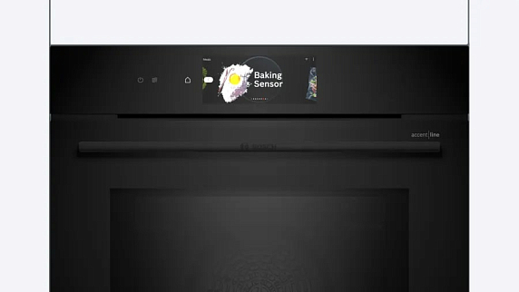 Духовой шкаф Bosch HMG978NB1 из серии Serie 8 выделяется строгим черным цветом и продуманной геометрией, где каждая деталь продумана для визуальной гармонии и эргономики. Матовая облицовка фасада плавно переходит в высококонтрастную панель управления с 6.8″ цветным TFT‑дисплеем и сенсорными кнопками, обеспечивая современный вид и интуитивную навигацию. Наличие откидной дверцы с амортизатором SoftOpen делает открывание мягким и точным, а четырехслойное остекление и низкая температура нагрева наружного стекла (30 ºC) гарантируют повышенную безопасность при эксплуатации. Телескопические направляющие на одном уровне облегчают работу с горячими блюдами, а комплект поставки включает эмалированную решетку, универсальный противень и дополнительный противень Air Fry, готовый к экспериментам с хрустящей корочкой.