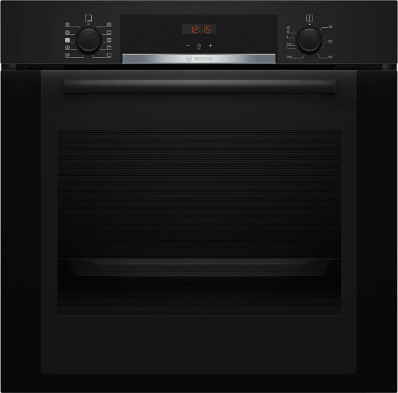 Духовой шкаф Bosch HRA3340B0 относится к серии Serie 4 и представляет собой электрический, независимый прибор. Стильный черный цвет корпуса и фурнитуры придает ему современный и элегантный вид, что позволяет шкафу гармонично вписываться в любой интерьер кухни. Управление этим прибором осуществляется с помощью электронных, сенсорных поворотных утапливаемых элементов, что обеспечивает удобство и простоту использования. На LED-дисплее отображается всю необходимую информация, включая время на электронных часах и настройки таймера. В этом духовом шкафу предусмотрено 8 режимов нагрева, включая 3D-горячий воздух, горячий воздух Gentle, верхний/нижний жар, большой гриль, гриль с конвекцией, термогриль, режим для пиццы, нижний жар и паровой режим AddedSteam базового уровня.