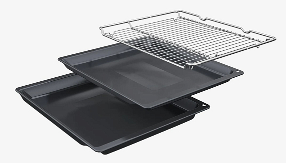 Духовой шкаф Bosch HRA474BB0S оснащена режимом приготовления 3D горячий воздух, он распределяет тепло по всем уровням равномерно. Имеются автоматические программы, при выборе их вам остается только ввести вес продукта, а рецепт блюда уже есть в устройстве. Освещение у модели галогеновое, оно отлично освещает внутреннее пространство.