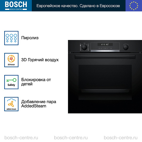 Духовой шкаф Bosch HRA578BB0S электрический, шириной 59.4 см, нержавеющая сталь, пиролитическая очистка