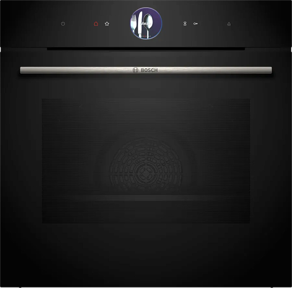 Духовой шкаф Bosch HRG7764B1 создан для тех, кто ценит минимализм в сочетании с профессиональными возможностями и продуманной эргономикой. Визуально корпус выполнен в строгом чёрном цвете с аккуратной фурнитурой из нержавеющей стали, что делает прибор универсальным решением для современной кухни и органично вписывает его в монохромные и контрастные интерьеры. Чистые геометрические линии фасада, гладкая поверхность стекла и металлические акценты создают ощущение премиального устройства, а четырёхслойное остекление дверцы и тёплый внешний контур гарантируют безопасное обращение при готовке. Откидная створка с амортизацией SoftOpen открывается легко и плавно, а наружная температура стекла не превышает 30°C, что повышает комфорт в повседневном использовании.