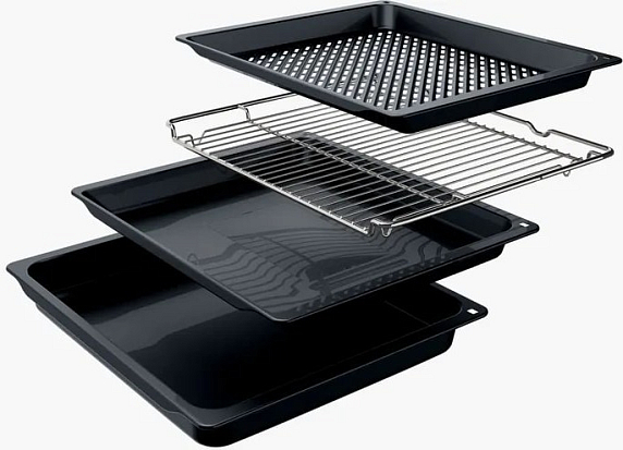Мощность духового шкафа Бош позволяет максимально ускорить приготовление блюд даже самых внушительных объемов и весов. Поместите продукты на решетку, разместите под ней противень и включите «Большой гриль». В этом режиме включаются все нагревательные элементы гриля. Следуйте рекомендациям в инструкции, чтобы не пересушить продукты.