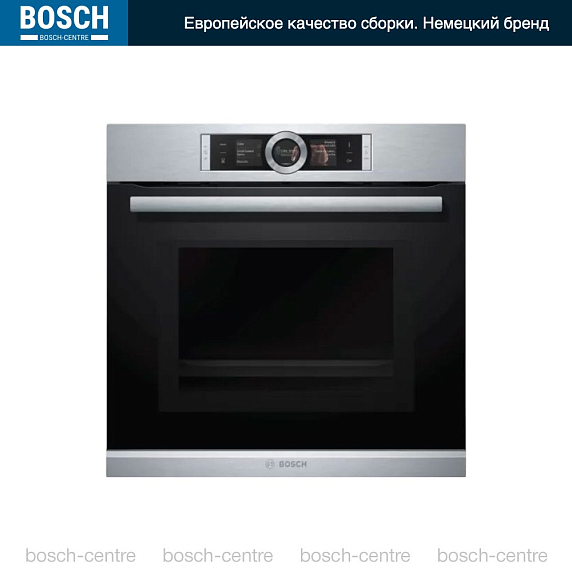 Духовой шкаф Bosh HMG636RS1 — это сочетание стиля и технологий. Строгий дизайн дополнен переключателем Control Ring и большим TFT-дисплеем с сенсорными кнопками