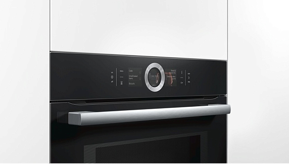 Духовой шкаф CMG636BB1 оснащен цветным дисплеем. Режим СВЧ можно использовать в комбинации с традиционными видами нагрева. Микроволны используют для быстрого приготовления, разогрева или размораживания продуктов. В режиме «Микрокомби» можно выбрать одно из трех значений мощности. Блокировка управления предотвращает случайное включение и изменение настроек во время работы прибора.
