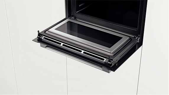 Компактный духовой шкаф Bosch CMG636BS1 оснащен множеством функций, микроволны позволят разогреть или быстро приготовить блюдо.