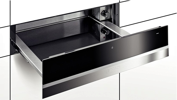 Шкаф для подогрева посуды Bosch BIC630NS1 с режимом поддержания тепла и приготовление опары расширяют функциональные возможности прибора. Телескопические направляющие обеспечивают плавное и легкое выдвижение. Механизм открытия без ручки — это эстетика внешнего вида и дополнительный комфорт использования. Зону нагрева из закаленного стекла удобно очищать от загрязнений.