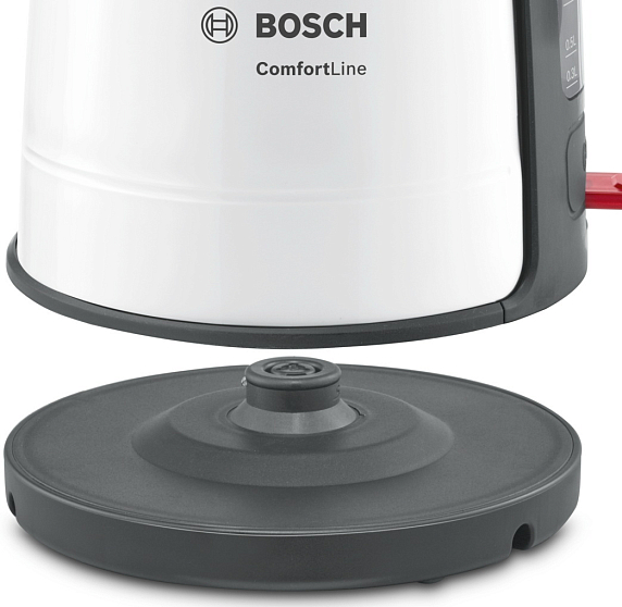 Чайники Bosch имеют несколько уровней защиты: нагрев отключается, если чайник снят с цоколя, если вода закипела или ее слишком мало. Предохранитель автоматически прекращает работу нагревательного элемента.