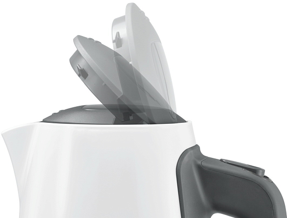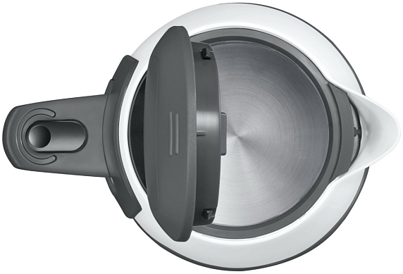 Чайник Bosch TWK 6A011 автоматически прекращает работу при отсутствии воды и при перегреве, гарантируя безопасное использование. Крышка открывается нажатием на кнопку, поэтому наполнить чайник водой можно, держа его в одной руке.