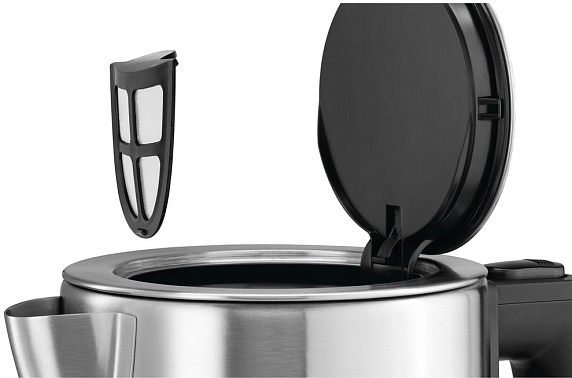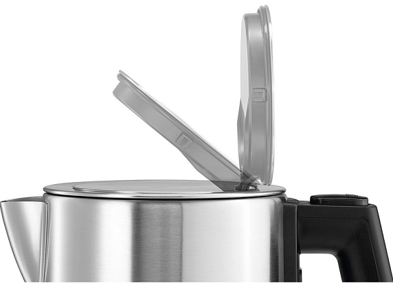 Кнопка включения располагается под ручкой, когда прибор включен в ней загорается световой индикатор. Цвет нержавеющей стали гармонирует с любым интерьерным решением кухни. В цоколе находится отсек для хранения шнура, что обеспечивает комфортную эксплуатацию. Поворот подставки на 360 градусов позволит взять устройство с любой удобной стороны.